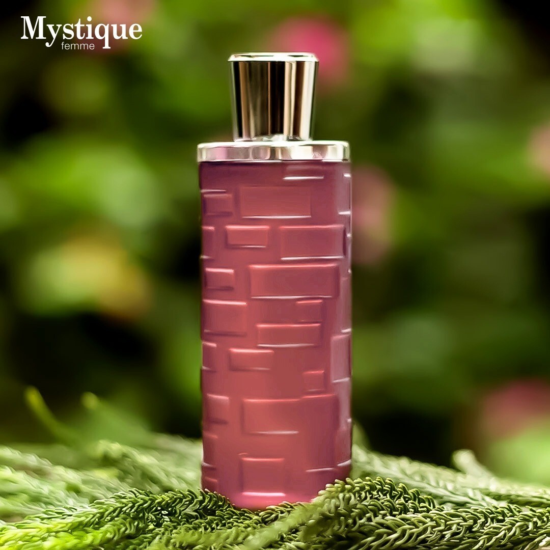 Al Haramain Mystique Femme е жен?вен и изикан па???м, кой?о пленва ?а?мони?на комбина?и о? вежи плодови и ?ве?ни но?ки, доп?лнени о? ?опли д??вени и амб?ови ако?ди.