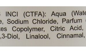 СЪСТ?: ?ода (Aqua), на??иев ла??е? ?л?а?, на??иев ?ло?ид, па???м (а?ома?), ?и?ен/ак?ила?ен ?полиме?, лимонена киелина, 2-б?омо-2-ни??оп?опан-1,3-диол, линалол, ?инамал, лимонен, ?и??ал