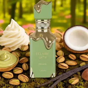 Lattafa Eclaire Pistache е г??ме ?ниек па???м из??н?ени но?ки на пи?а?иева ме?ана, коко, какао и ванили. Този лад?к и к?емооб?азен а?ома? п?едлага д?лго??айна веже? и ?оплина, под?од? как?о за ежедневна ?по??еба, ?ака и за пе?иални поводи. алади е на ?никално?о ??е?ание на г??ме и м?к?ни ако?ди Lattafa Perfumes.